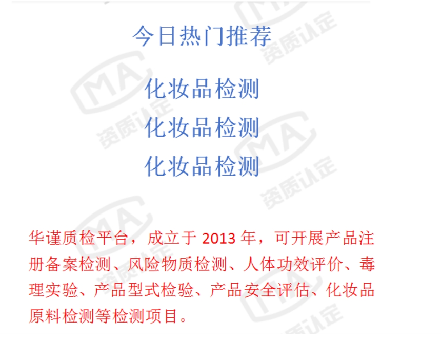 佛山市禅城化妆品检测单位,专注化妆品检测实验室佛山市禅城区化妆品检测单位,专注化妆品检测实验室 佛山市禅城区化妆品检测实验室:专业检测技术赋能产业高质量发展佛山市禅城区作为珠三角化妆品产业集聚地,依托完善的产业链布局和严格的质量监管体系,已形成以专业检测实验室为核心的质量控制枢纽。这些实验室通过先进的技术手段和规范化管理,为区域内化妆品企业提供从原料到成品的全流程检测服务,成为保障产品安全、推动产业升级的重要技术支撑。 实验室资质与技术能力禅城区化妆品检测实验室严格遵循《化妆品安全技术规范》(2022年版)要求,配备电感耦合等离子体质谱仪(ICP-MS)、高效液相色谱仪(HPLC)、气相色谱-质谱联用仪(GC-MS)等精密检测设备,可开展微生物指标、重金属含量、防腐剂、防晒剂、激素、抗生素等10余类关键项目的检测。实验室通过CMA(中国计量认证)资质认定,检测数据具有法律效力,支持企业产品注册备案、市场监管抽检及出口贸易等多场景需求。 在技术团队配置上,实验室拥有一批具备化妆品检测领域5年以上经验的专业技术人员,其中高级职称占比达30%,核心成员参与过国家化妆品安全标准修订工作。2025年最新招聘信息显示,实验室持续吸纳色谱检测、微生物检验等专业人才,强化在痕量物质分析、未知物鉴定等领域的技术储备。 服务范围与产业协同实验室服务覆盖化妆品产业链全生命周期,包括: